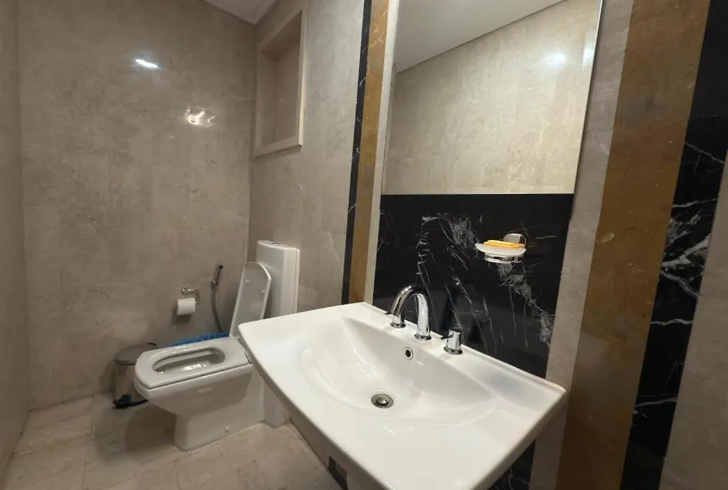 علاوة على ذلك، يشتمل الحمام على مجفف الشعر وملاءات الحمام والمناشف.